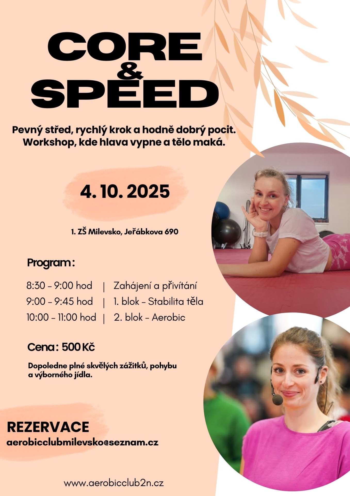 Připravily jsme si pro Vás víkend plný zábavy, odpočinku a hlavně pohybu. Čeká nás Aerobic, Step Aerobic, Bodystyling, prvky Jógy na protažení těla, Kruhový trénink, ...