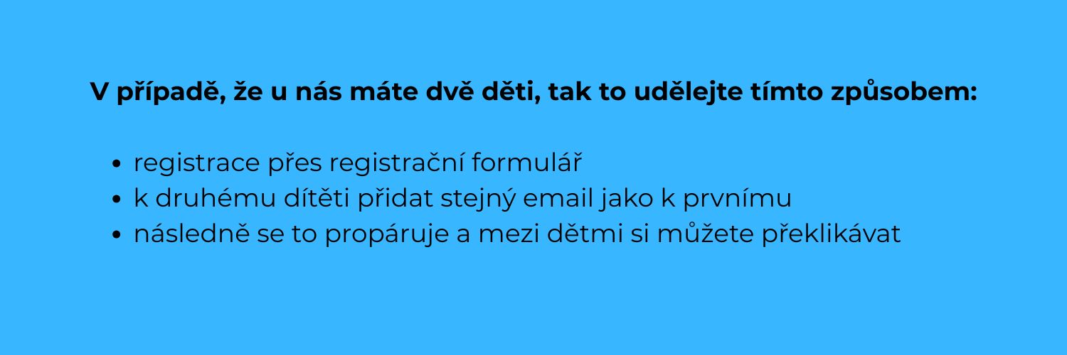 Po příchodu potvrzovacího emailu, zákonný zástupce doplní informace v profilu dítěte (vč. zástupce).